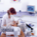 Wir tragen 3D-Brillen beim Mikroskopieren.